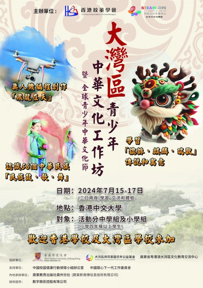 「大灣區青少年中華文化工作坊」現接受報名 最新消息, 活動By AclDesign2024-05-28民族一家。愛我中華。共譜華章。嶄新體驗「大灣區青少年中華文化工作坊」暨全球青少年中華文化節 現已接受報名 為了…