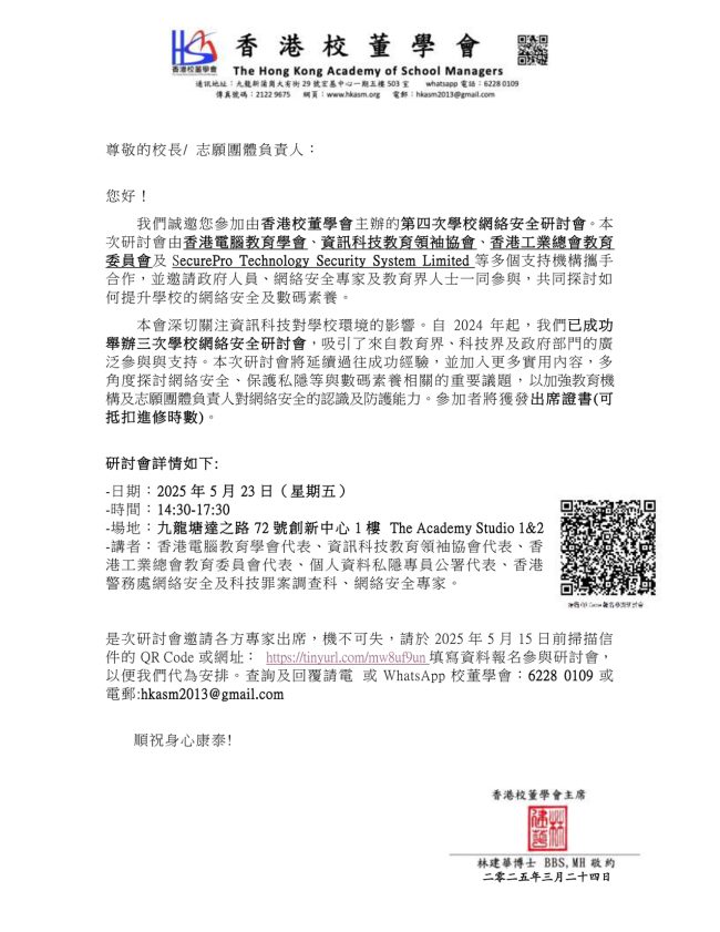 第三次網絡安全研討會實況 最新消息, 活動, 講座By AclDesign2025-03-04第三次網絡安全研討會實況 香港校董學會與SecurePro Technology Security Syste…